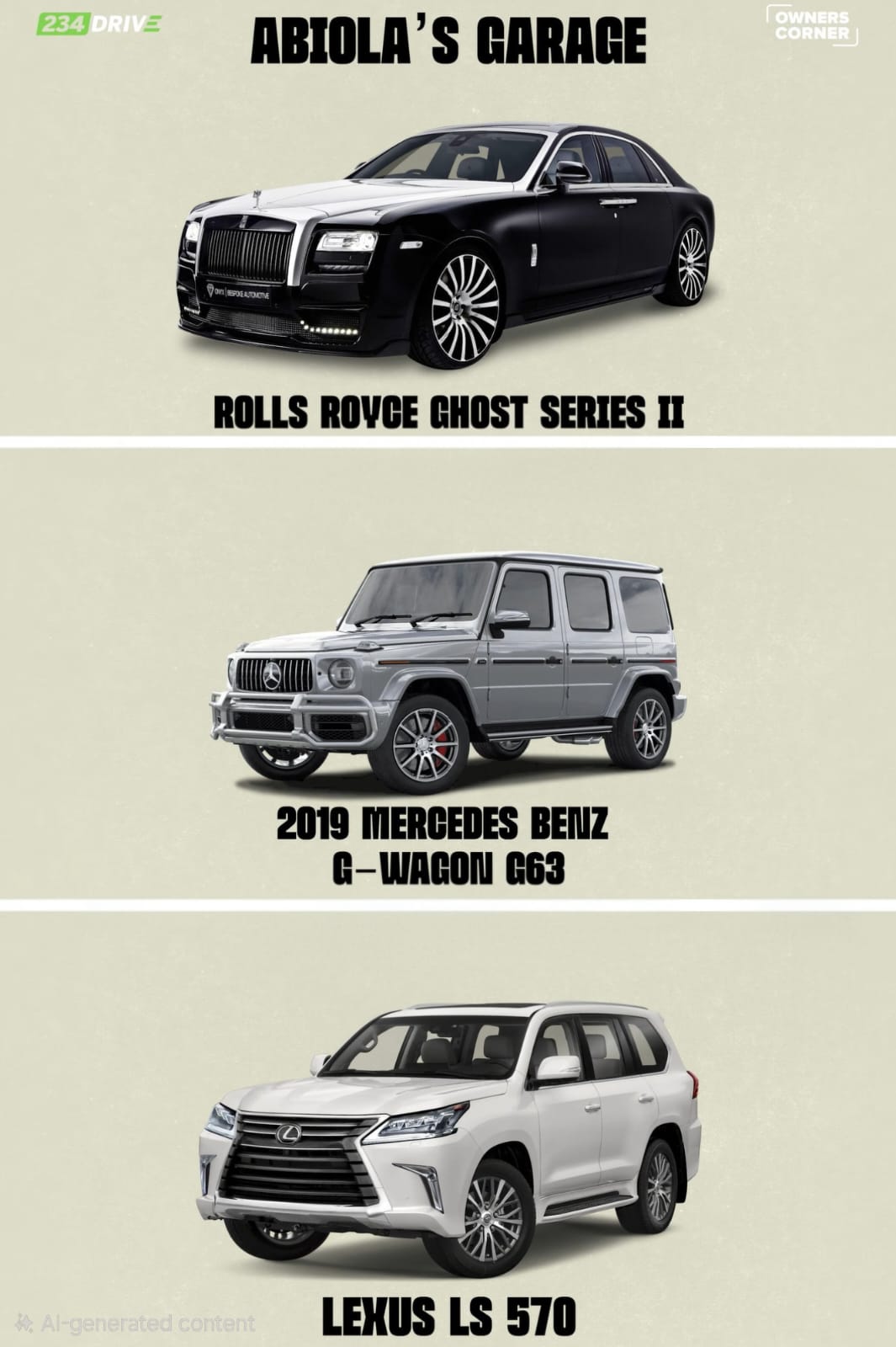 If you ask Abiola what his favourite car is, he won’t say the Maybach. He won’t say the G63 or the Rolls-Royce either.