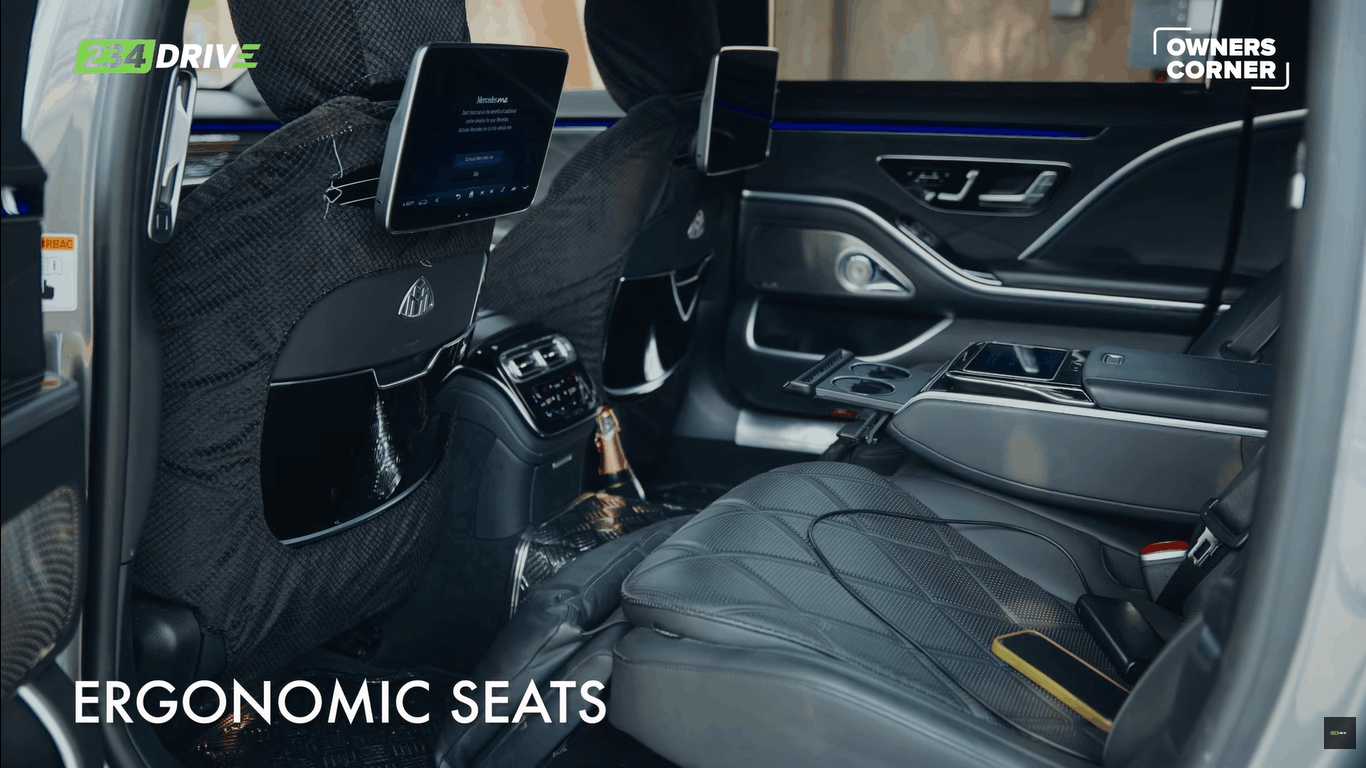He starts listing them. The reclining seats. The seat-integrated speakers. The dual-tone paint, which was a $14,000 factory option and is exclusive to the Maybach. The detachable tablets. The 3D gauge cluster on the dashboard, which Abiola didn’t even know Mercedes was making until he saw it in his car.
