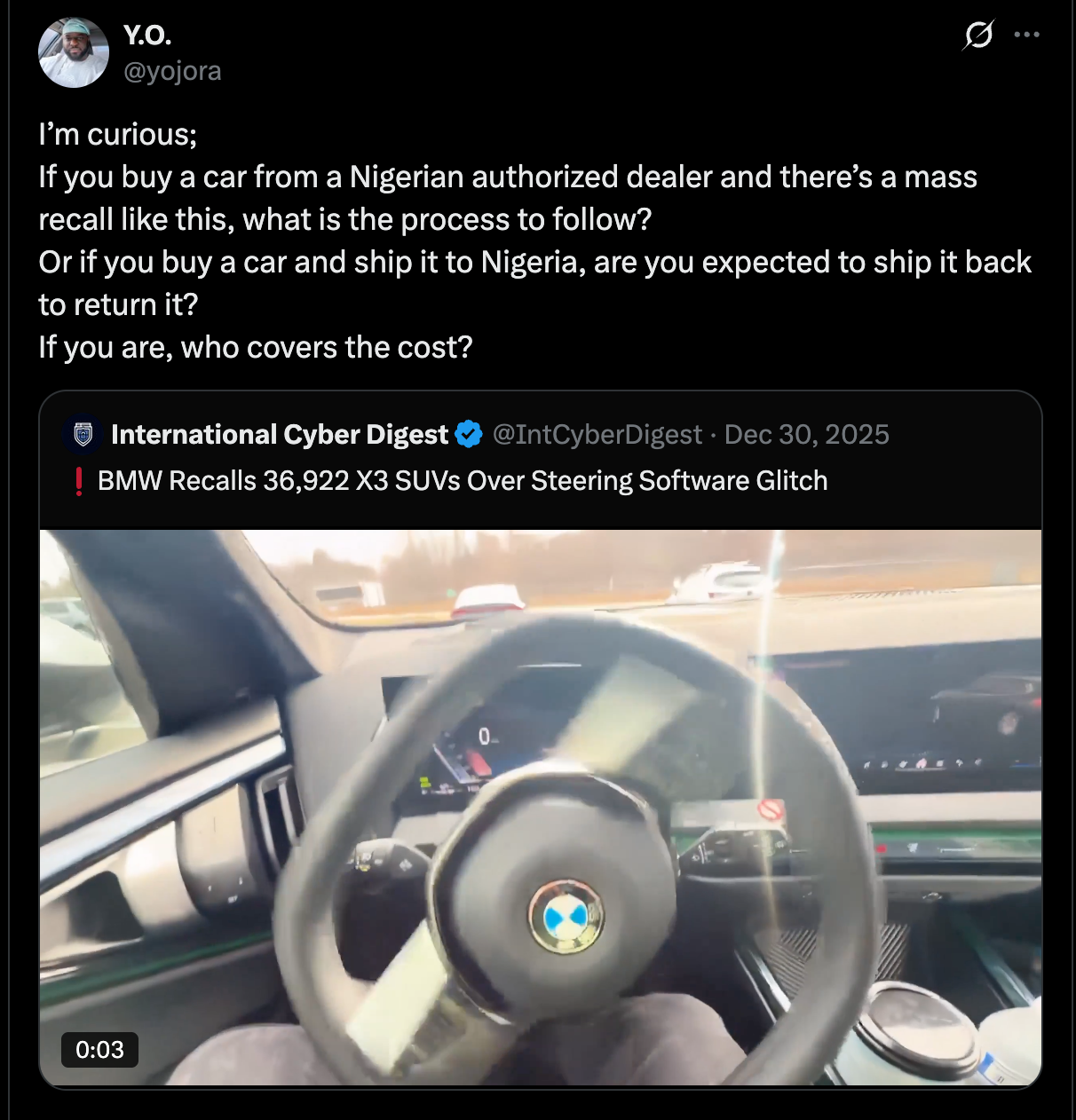 The deciding factor is dealer presence. For BMW owners, Coscharis BMW is the official representative. If BMW announces a recall, Coscharis can inspect and fix affected cars once owners confirm eligibility using their VIN and book an appointment.