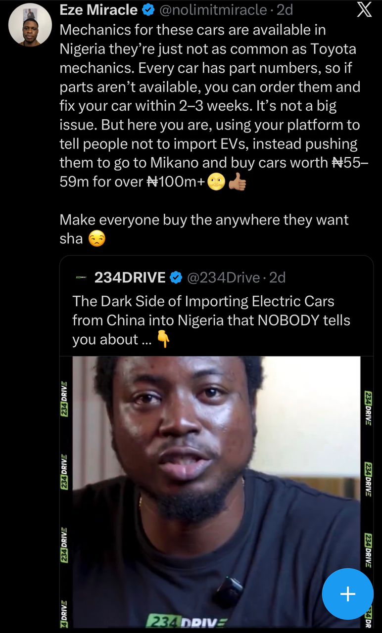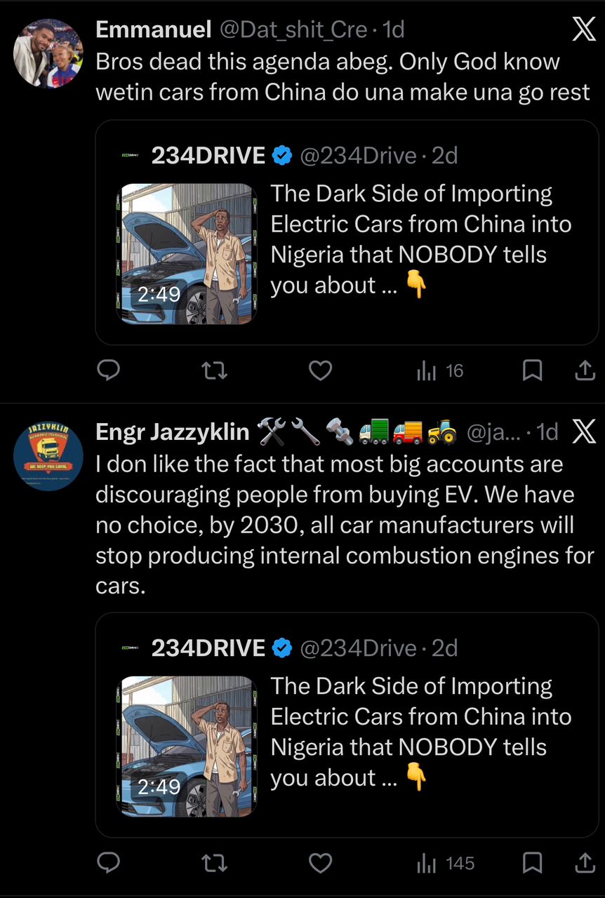When 234Drive shared the post asking people to weigh their options carefully before importing EVs from China, it sounded really straightforward—but the reactions went in very different directions.